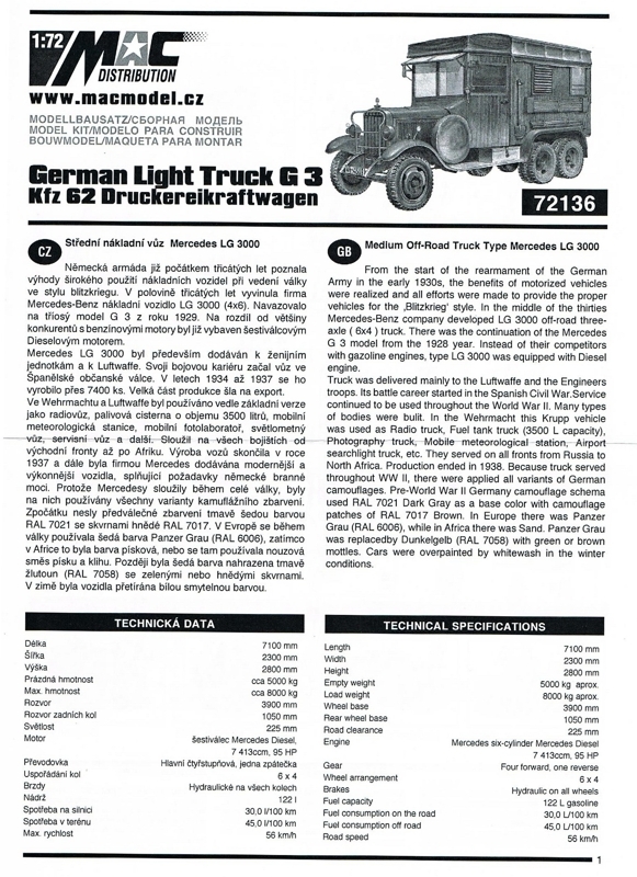 Vojenská technika / 1:72 / German Light Truck G3 Kfz 62 Druckereikraftwagen