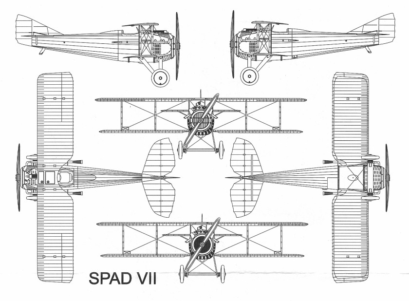 Francouzské zaměření na lehké stíhací letouny poháněné rotačními motory bylo dáno vytříbenou konstrukcí a širokou produkcí těchto hnacích jednotek. Ovšem na počátku roku 1915 již bylo ve francouzském a potažmo i spojeneckém letectvu zřejmé, že se začnou uplatňovat vodou chlazené řadové letecké motory. Koncem roku 1915 Luis Bechereau z továrny Societe pour Aviation et ses Derives zkonstruoval malý jednosedadlový stíhací dvouplošník, který se měl stát jedním z nejvýznačnějších letounů I. světové války. Prototyp SPADu VII byl poháněn 140 HP motorem Hispano-Suiza. V pozdějším období byly k dispozici výkonnější verze tohoto motoru o výkonu 150 HP, 180HP a 200 HP. Letouny prvních sérií přicházely na frontu na podzim 1916 a brzy si získaly popularitu. SPADy VII byly svázány s francouzskou letkou Čápů - Esc 3 (Les Cicognes) a se jmény jejích pilotů Fonck a Guynemer, kteří obdrželi jedny z prvních sériových letounů. Guynemer na něm dosáhl 4. září 1916 svého 15. sestřelu. SPADy S VII které byly vybaveny výkonnější pohonnou Hispano Suiza o 180 HP představovaly již významný pokrok oproti stíhacím Nieuportům. Protože francouzské letectvo nasadilo stíhací letoun s klasickou výzbrojí dvou synchronizovaných kulometů až v první polovině roku 1918 - rok po anglickém Camelu a dva roky po německém Albatrosu, vyrovnávalo tento handicap masovým nasazením SPADů VII a koncentrací elitních pilotů. SPADy VII díky své strukturální pevnosti a schopnosti vydržet střemhlavé lety vysokými rychlostmi bez poškození konstrukce znamenaly počátek konce éry lehkých stíhaček s rotačními motory. Brzy si získaly mezi francouskými a ostatními spojeneckými piloty velkou popularitu. Celkem bylo vyrobeno přes 5600 Spadů VII, z čehož bylo vyrobeno v licenci v Anglii 220 strojů a v Rusku přes 100. Proslulá jednotka amerických dobrovolníků Escadrille Lafayette používala SPADy VII od února 1918, kdy byla převedena z řad francouzského letectva k Americkým expedičním silám (A.E.F.) a stala se 103. Aero Squadronou. SPADy VII byly široce používány také v poválečném období do poloviny dvacátých let leteckými silami mnoha států včetně asijských i amerických..