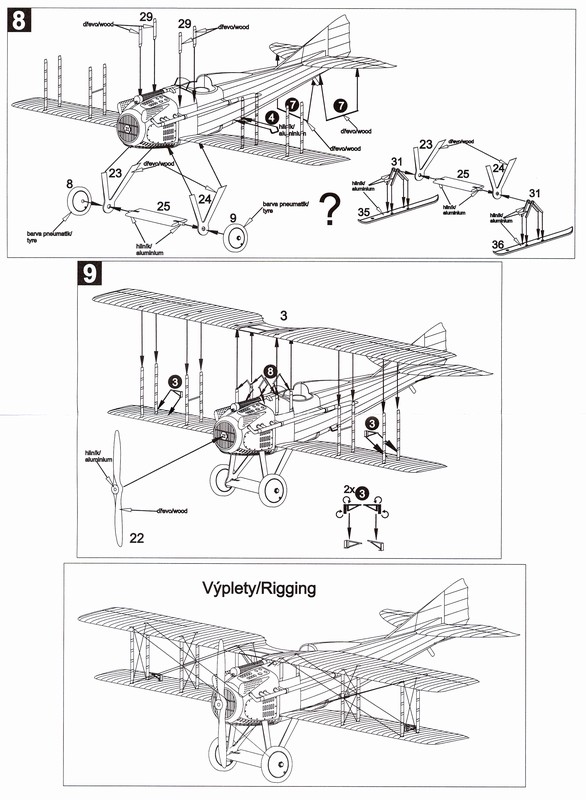 Uspořádání křídel: Dvouplošník dřevěné konstrukce, potažený plátnem