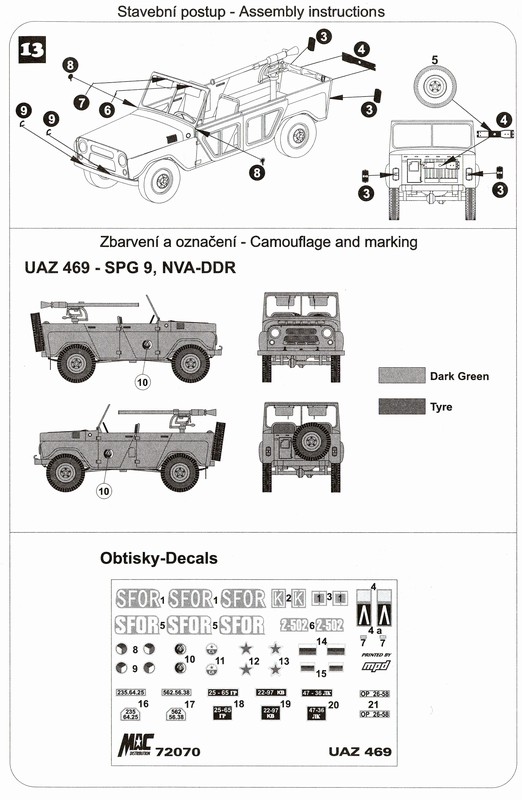 Vojenská technika / 1:72 / UAZ 469 with SPG-9 NVA