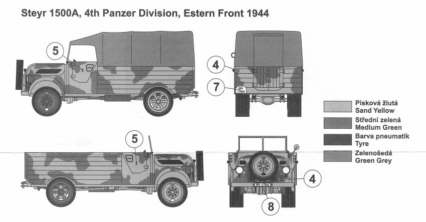 Grau (RAL 6006), zatímco v Africe to byla barva písková, nebo se tam používala