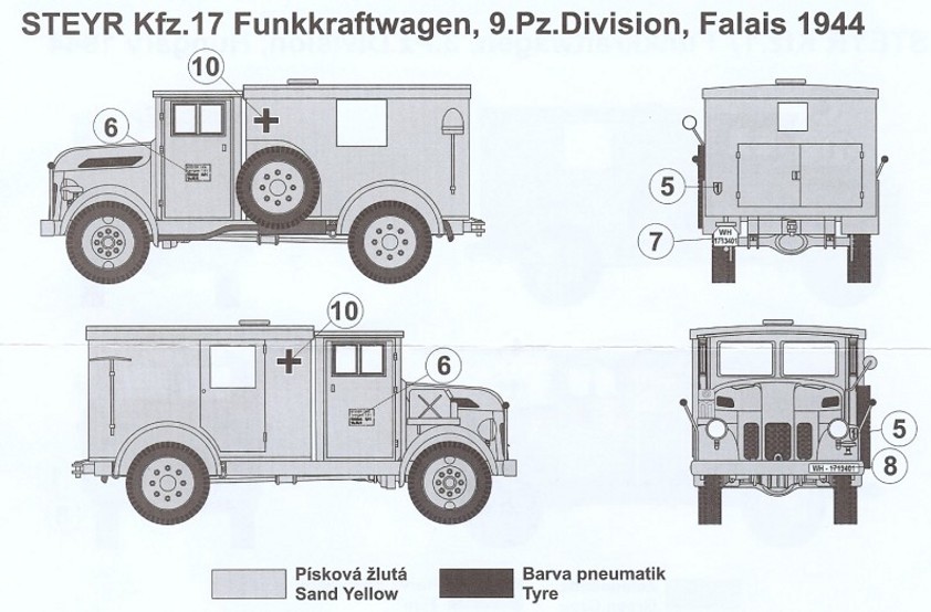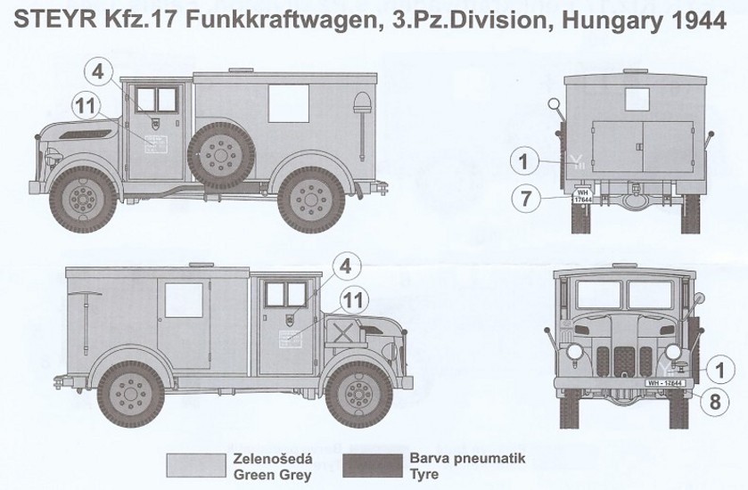 Protože vozidla sloužila během celé války, byly na nich používány všechny varianty kamuflážního zbarvení. Zpočátku se v Evropě používala šedá barva Panzer Grau (RAL 6006), zatímco v Africe to byla barva písková, nebo se tam používala nouzová směs písku a klihu. Později byla šedá barva nahrazena tmavě žlutou (RAL 7058) se zelenými nebo hnědými skvrnami. V zimě byla vozidla přetírána bílou smytelnou barvou.