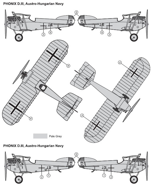 Phönixy D.III Rakousko-uherského námořnictva byly celé ve světle šedém